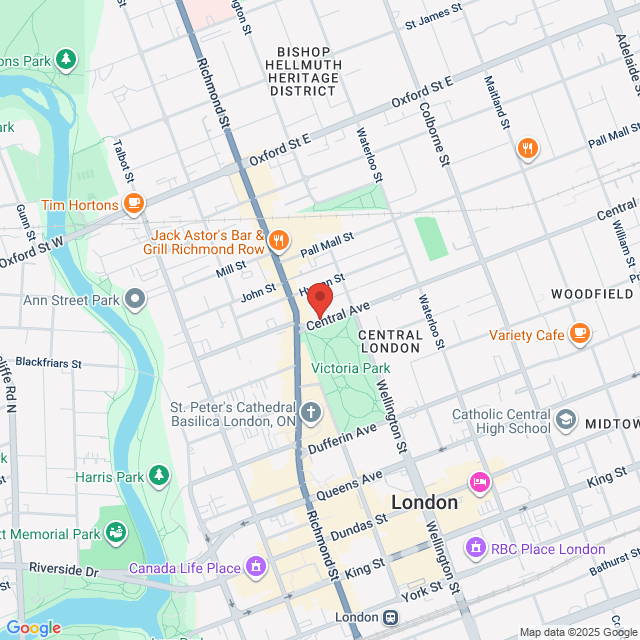 Central Ave Downtown London by Victoria Park. Enter Rebirth's parking lot off of Wellington St. or Hyman St.